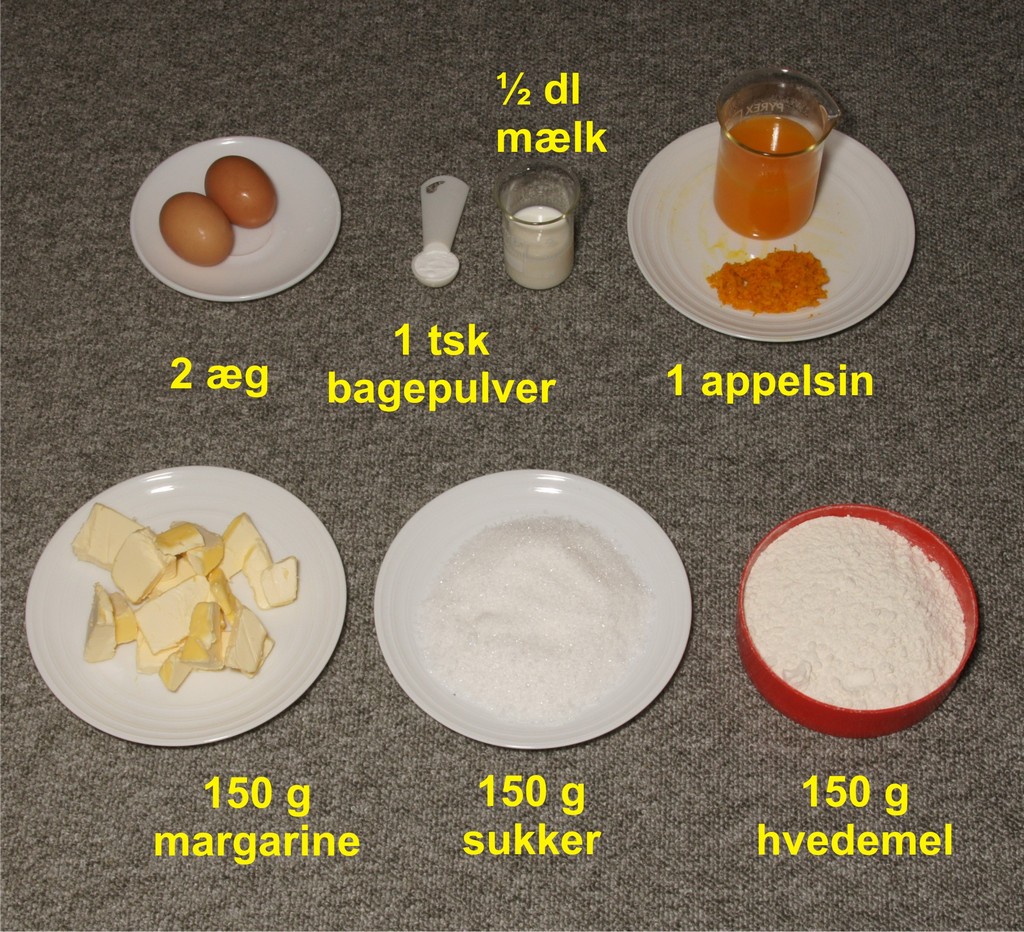 Pres appelsinen, saften skal først bruges, når kagen er bagt.