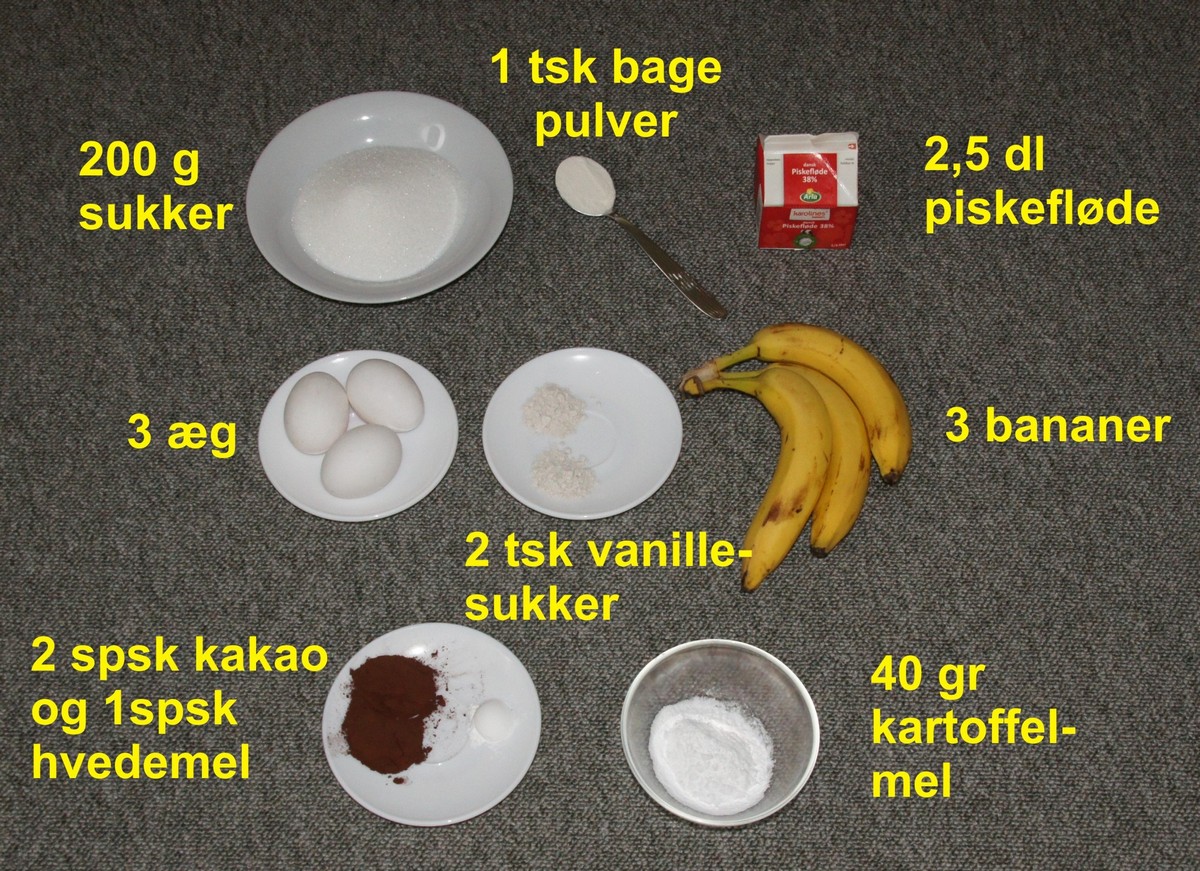 Bland de 2 slags mel med bagepulver og kakao.