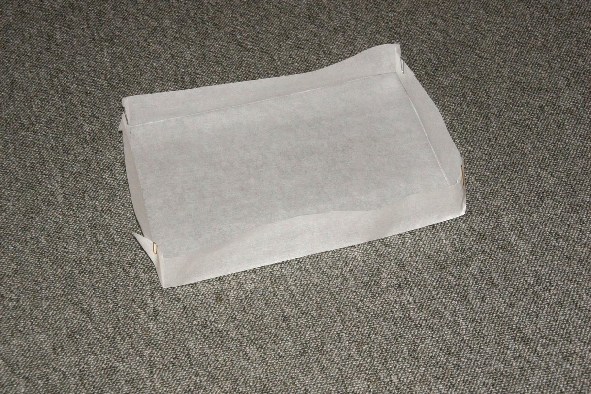 Lav en form af bagepapir ca. 25x35 cm.