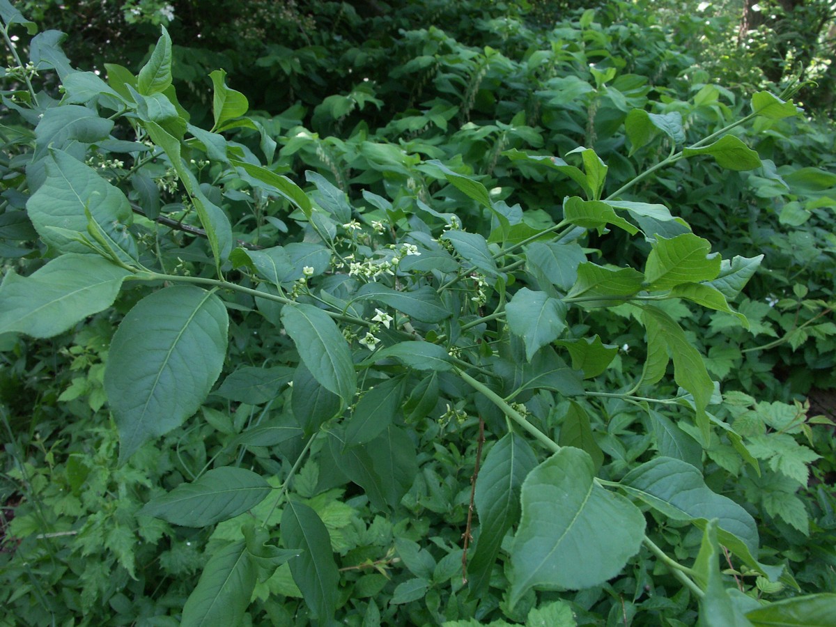 Blomsterne er hvidgrønne, små og