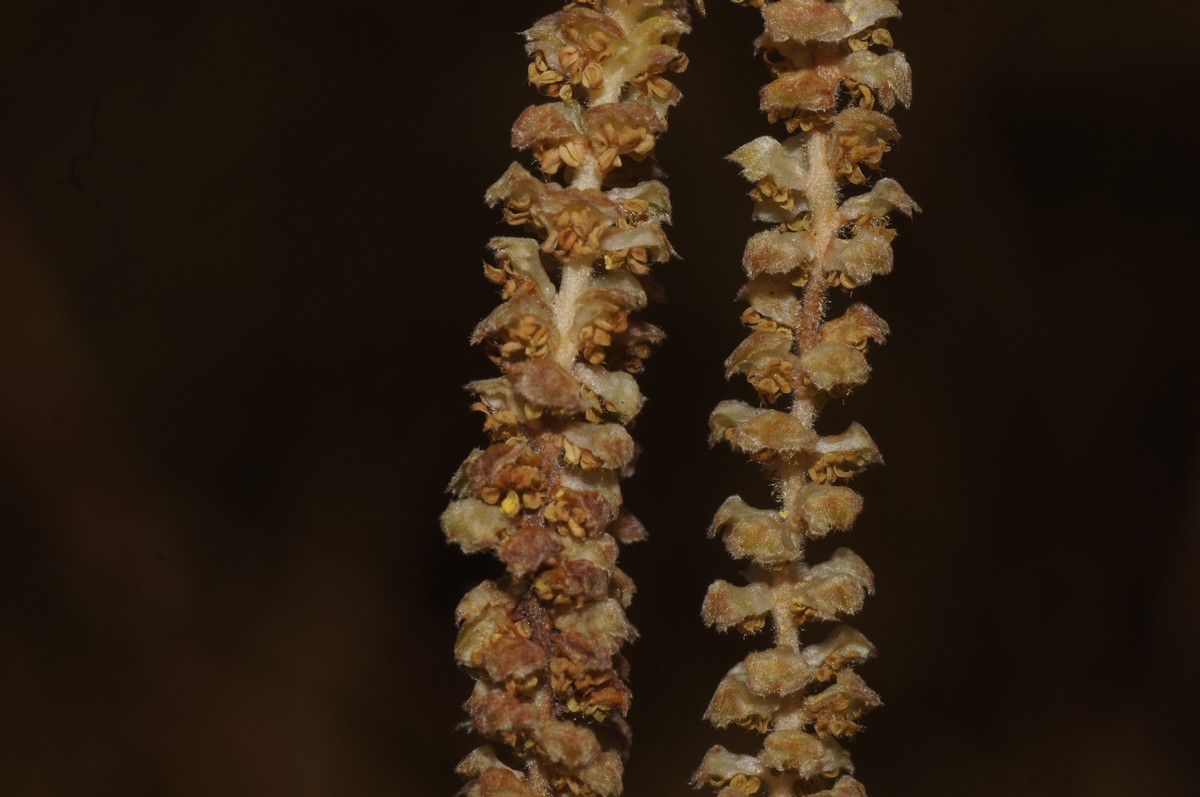 Her en åben rakkel, der sender utallige pollenkorn ud i omgivelserne - det kaldes vindspredning.