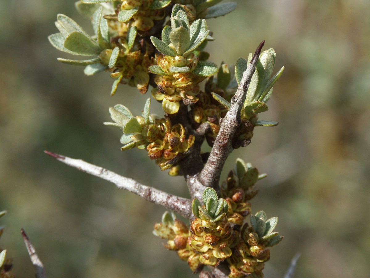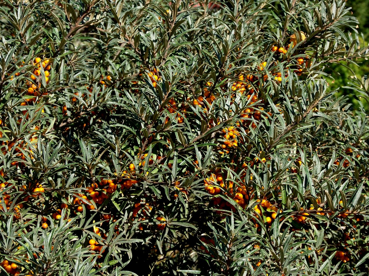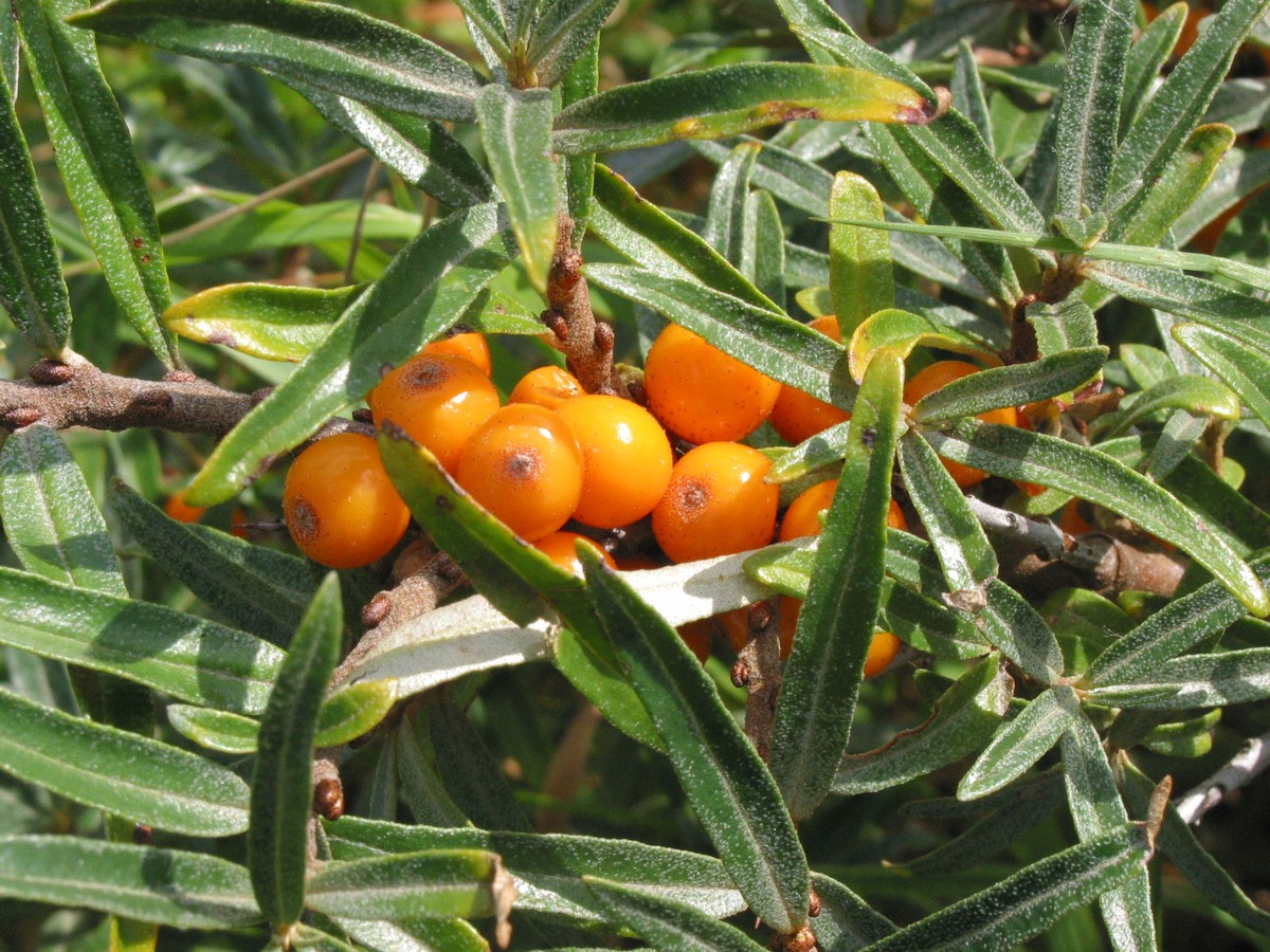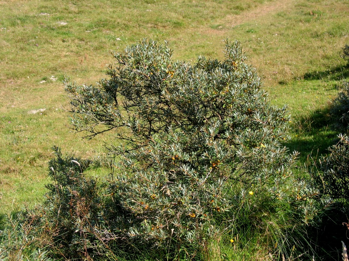 Familie: Sølvblad Art: Havtorn Højde: 1 - 3 m. Blomstring: maj - juni